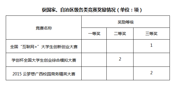 近年来,实训中心培养的学生在学创杯全国大学生创业综合模拟大赛、全国“互联网+”大学生创新创业大赛和2015云梦想广西校园商务精英大赛中初步崭露头角。