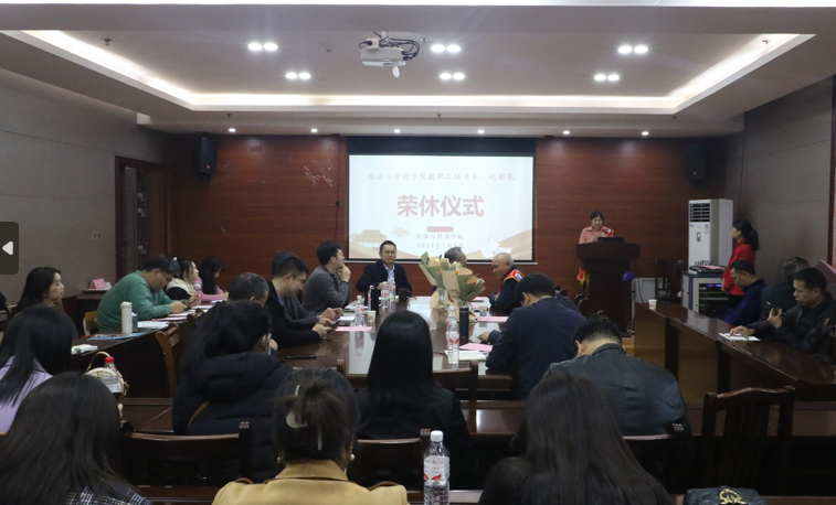 为学院陆升军、赵菊花举办了一场简单而温馨的退休仪式,学院领导班子成员及全体教职工、学生代表参加仪式,学院副院长、分工会主席何玲玲主持会议。