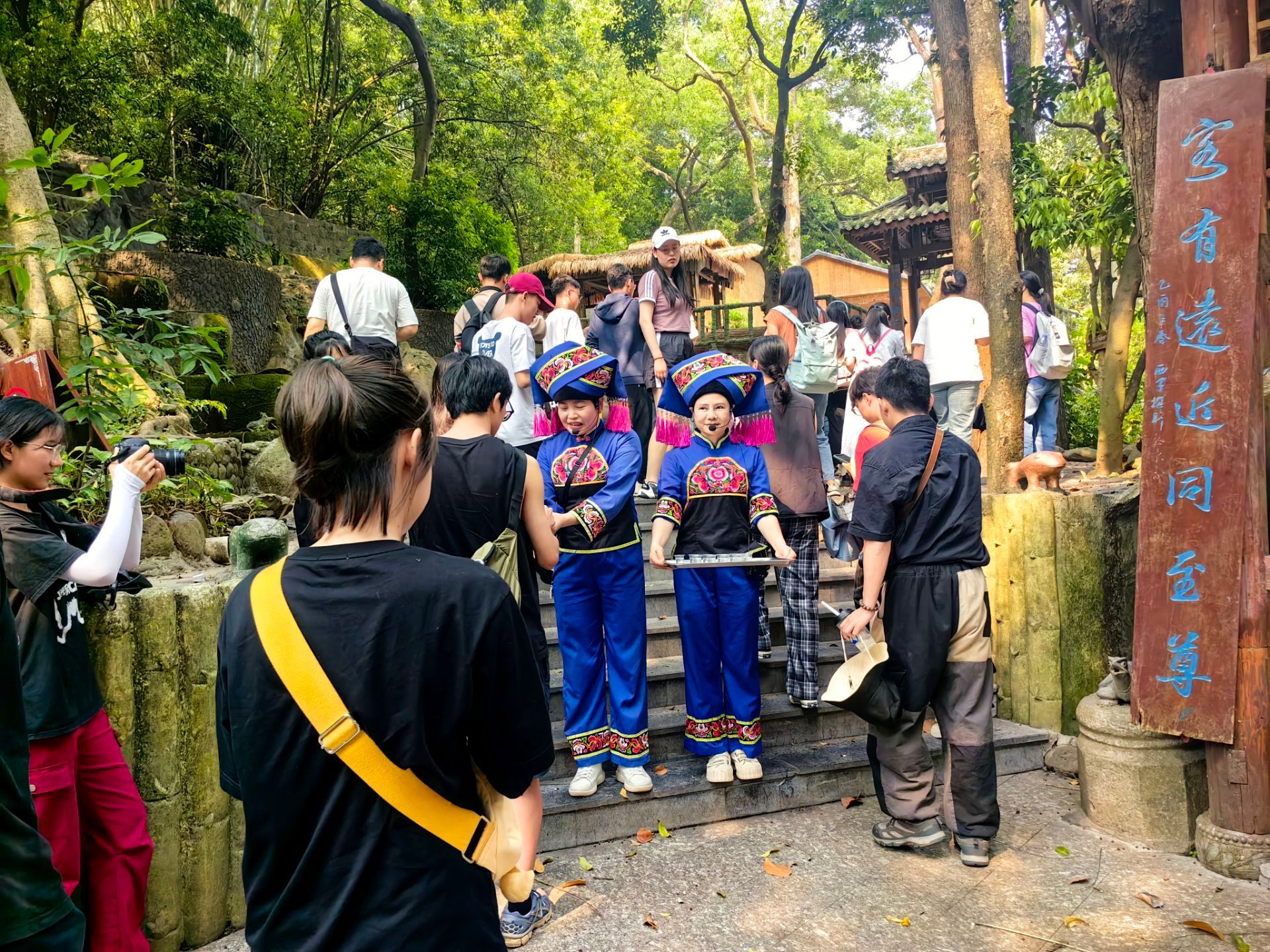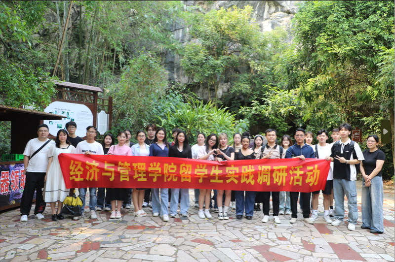 学工办辅导员孙国时、李宏晨、勒韦倩,率学院全体留学生及部分学生代表前往南宁市伊岭岩风景区开展壮乡文化调研活动。
