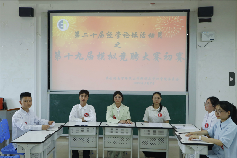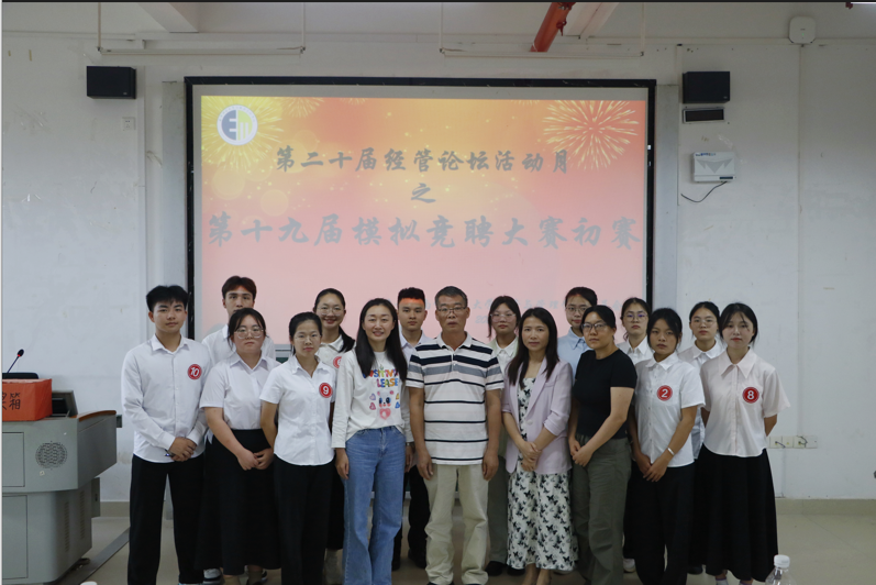 在五合校区综合教学楼举办第二十届“经管论坛活动月”系列活动之第十九届模拟竞聘大赛初赛,本次比赛面向全校学生征集参选选手,人力资源管理系徐来朝,彭义芳以及覃秒三位教师担任评委。