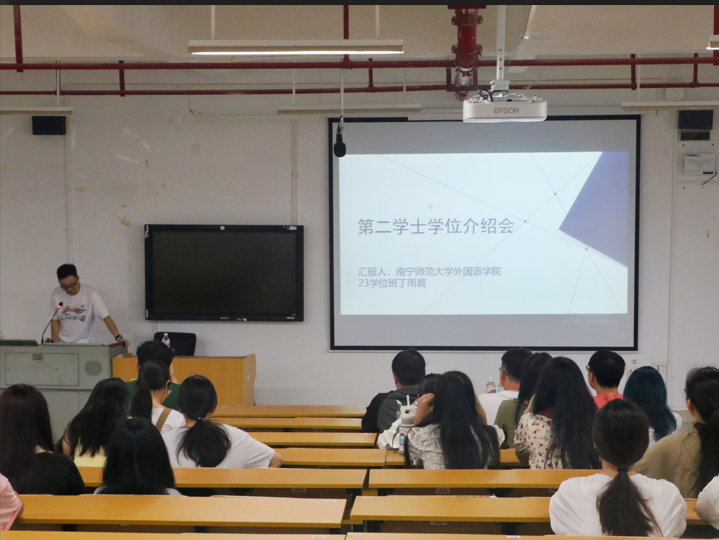 于5月9日下午在五合校区文理综合楼文楼召开第二学士学位交流会。本次交流会由外国语学院2023级学位班丁雨晨主讲,学院部分学生参与。