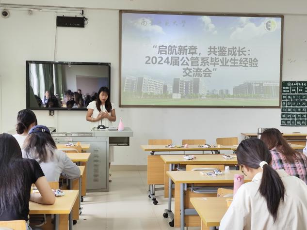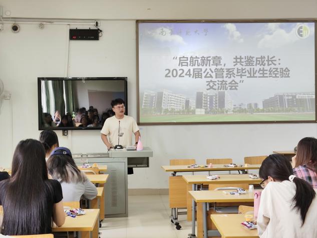五合校区五综208教室成功举办了“启航新章,共鉴成长:2024届公管系毕业生经验交流会”。本次活动特别邀请了公共事业管理系2020级的杰出学生代表,旨在通过他们的亲身经历和宝贵建议,为一至三年级的学弟学妹们提供关于考研规划、社团活动参与等多方面的指导与启发。