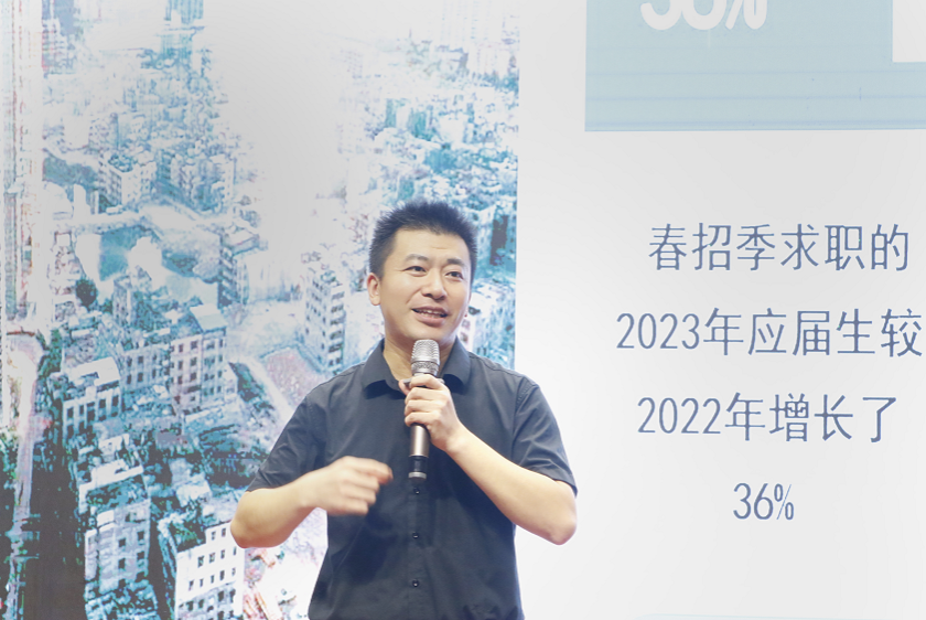 于文综楼开展2021级学生职业生涯规划讲座。本次讲座由肖钧泽讲师担任主讲人,学院党委副书记、纪委书记何一飞、部分辅导员、2021级全体学生参加了活动,学院辅导员李宏晨主持。
