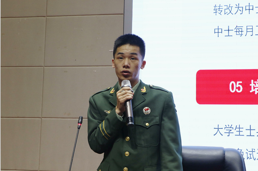 演讲人梁斌主要就大学生入伍优惠政策、发展前景与退役保障、应征入伍条件、应征入伍流程、军营生活、谨防征兵诈骗六个方面进行宣讲。梁斌就入伍的条件、准备以及后续发展为学生答疑解惑,鼓励学生积极投身军营,报效祖国,以此培养责任感,锻炼个人毅力,提高自律能力,增强身体素质。