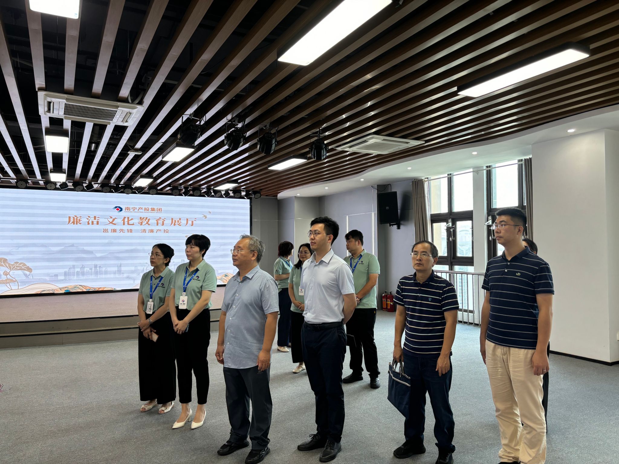 在南宁产投统一投资管理有限责任公司,韦海鸣书记等与公司董事长、学院优秀校友尤志婷及公司领导、部分部门领导举行了座谈会,调研组认真了解企业发展概况、用人需求,介绍了学院毕业生资源,分析了学院毕业生与公司需求匹配度,并就发挥公司资源帮扶学院2024届毕业生就业进行了深入探讨。双方还就进一步加强党建领域交流,优化学生实习、产学研合作等进行了交流。会后,双方举行实习实训基地授牌仪式,调研组还参观了南宁产投集团廉政文化教育展。学院党委副书记何一飞、学院副院长丘兆逸、学院教师程皓和辅导员孙国时、李宏晨参加了活动。