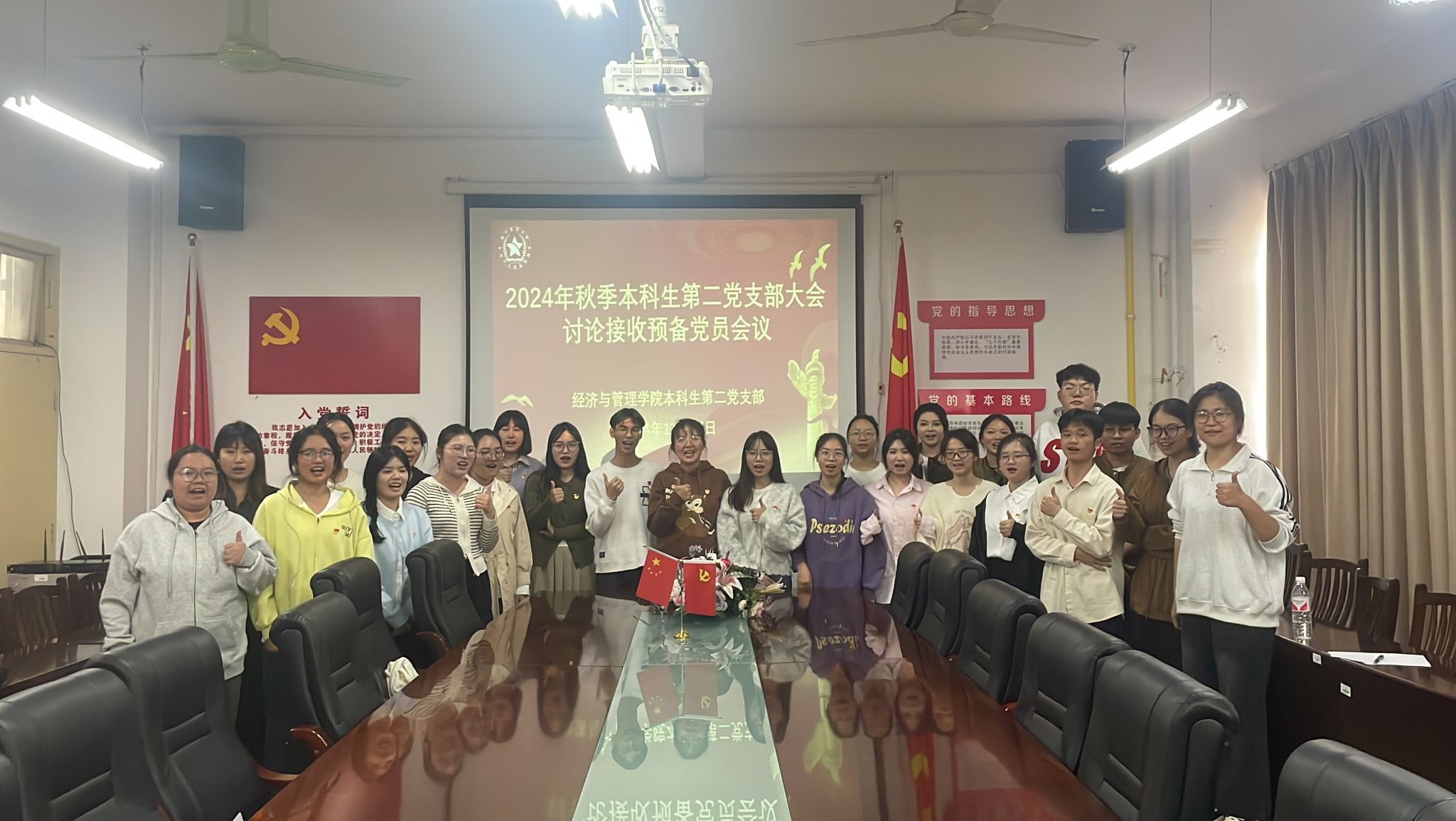 本科生第二党支部于明秀校区召开2024年下半年预备党员吸收大会。支部全体党员参加会议,会议由支部副书记陆柳政主持。