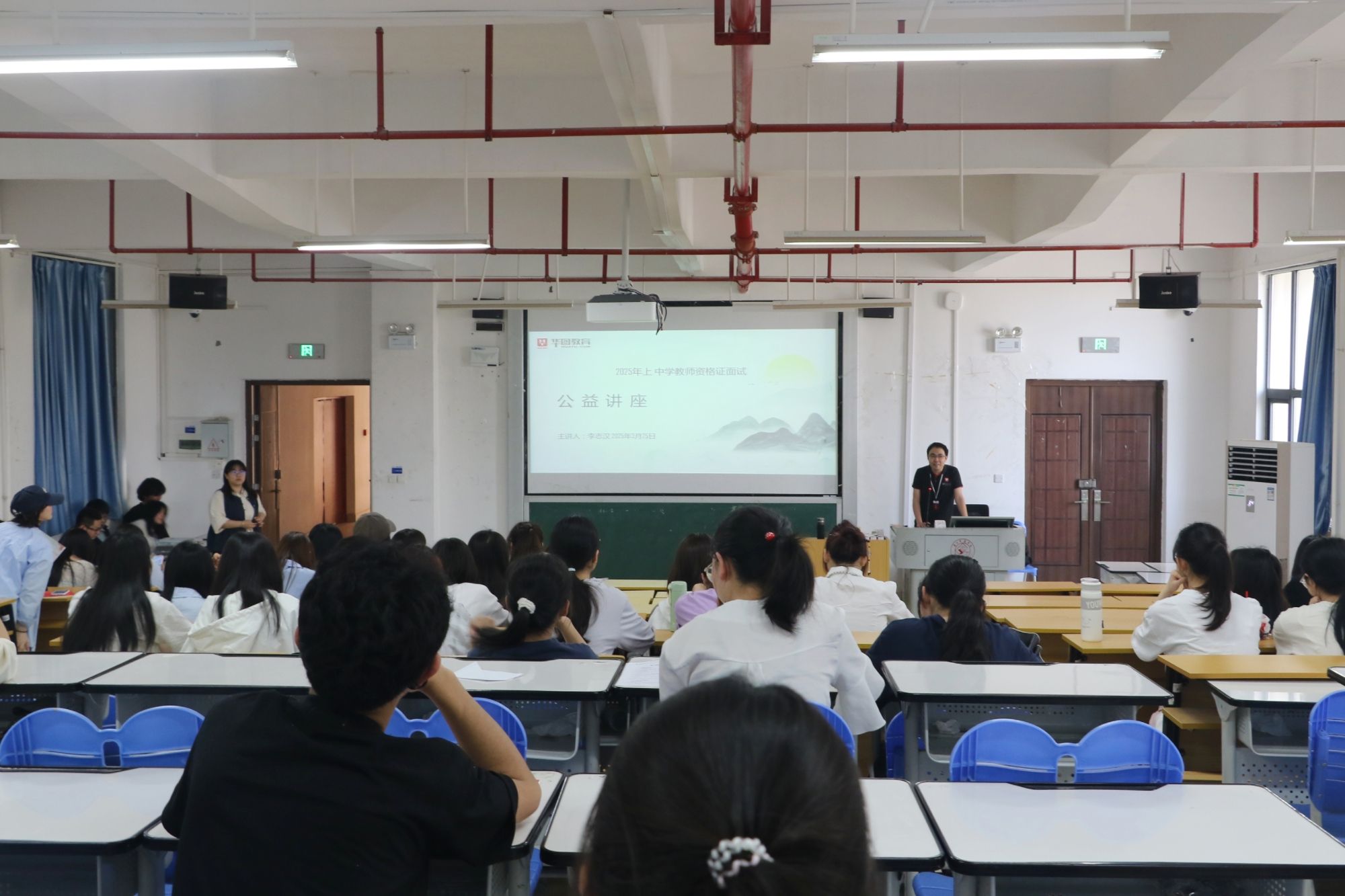 在文理综合楼文楼开展“教师资格考试”专场讲座,本次讲座由华图教育专职讲师李志汉主讲,学院部分学生参加。