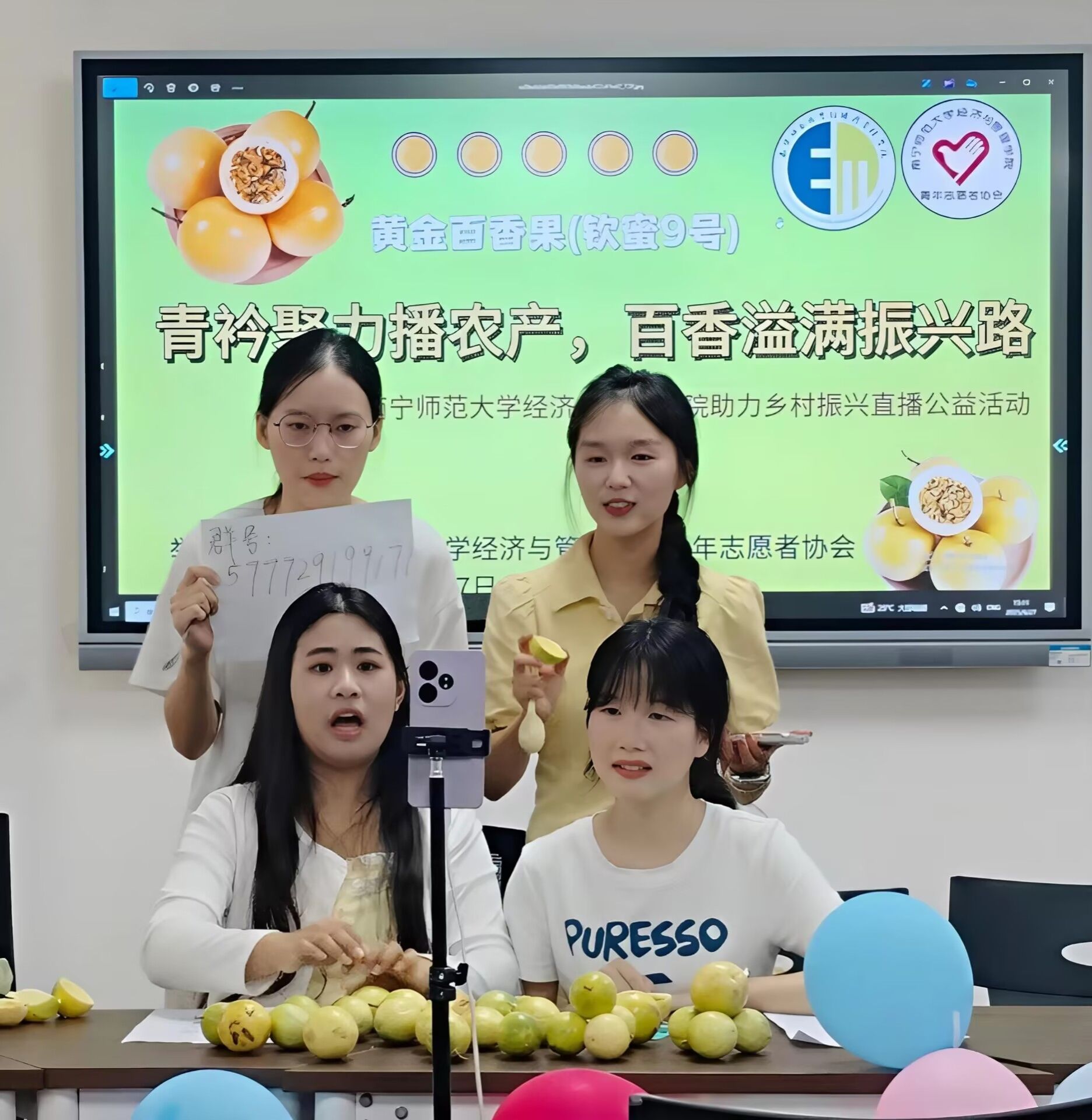 青年志愿者协会于2025年9月27日开展以“青衿聚力播农产,百香溢满振兴路”为主题的百香果直播助农大赛。