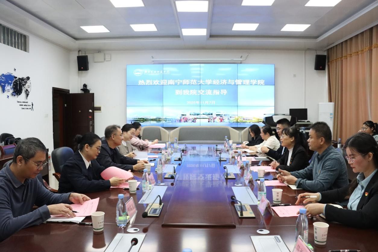 当日上午,支部党员一行在院长何玲玲带领下,赴广西民族师范学院开展学习交流。广西民族师范学院党委常委、副校长郑振锋及相关学院负责人出席交流会。交流座谈会上,郑振锋副校长首先代表广西民族师范学院致欢迎词,并介绍了学校的发展历程、学科特色、师资队伍建设及学生升学就业工作概况。何玲玲院长对av影片