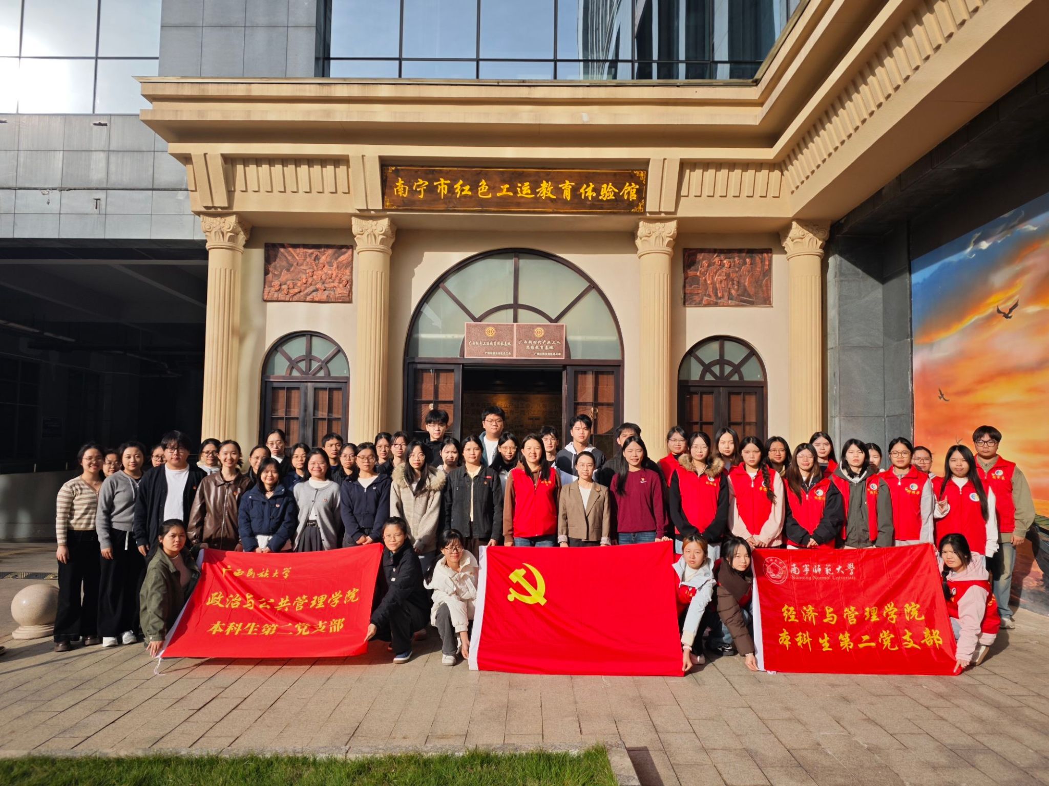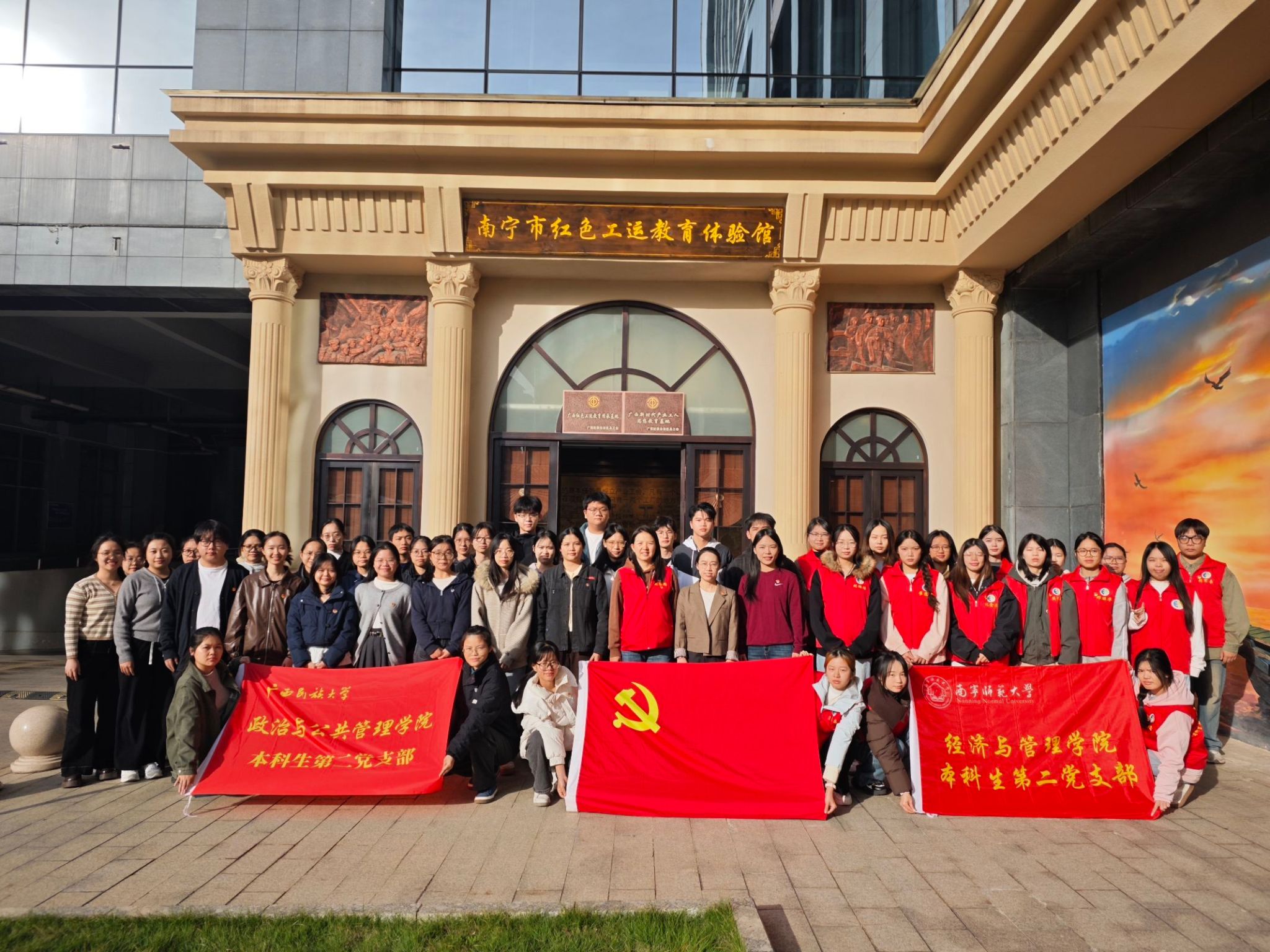 本科生第二党支部联合广西民族大学政治与公共管理学院本科生第二党支部,共同前往南宁市红色工运教育体验馆开展“传承工运红色基因,砥砺青春信仰担当”主题党日活动。