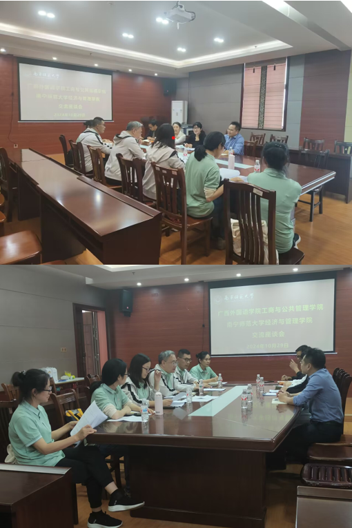 党委书记韦海鸣教授首先对广西外国语学院工商与公共管理学院的韦文焕副教授、覃娜副教授、胡丽萍老师和黄国明老师一行四人的到来表示热烈欢迎,并详细介绍了学院的公共管理硕士点建设、公共事业管理本科专业建设的经验及教学成果等相关情况。