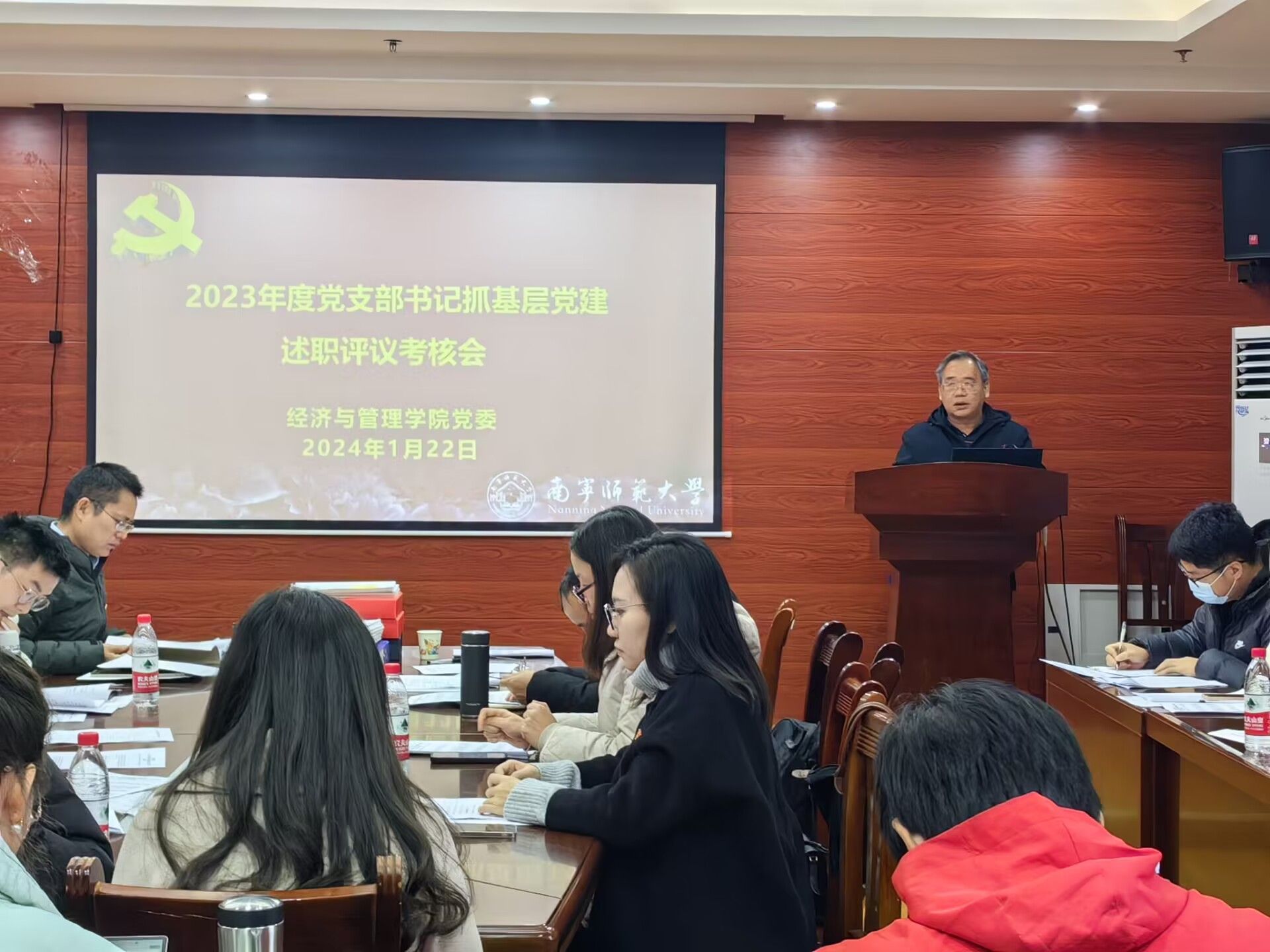 党委召开2023年度党支部书记抓基层党建工作述职评议会议,以评促建,推动全面从严治党向基层延伸。会议由党委书记纪明主持,学院党委委员,各党支部书记,师生党员代表、师生群众代表参加了会议。