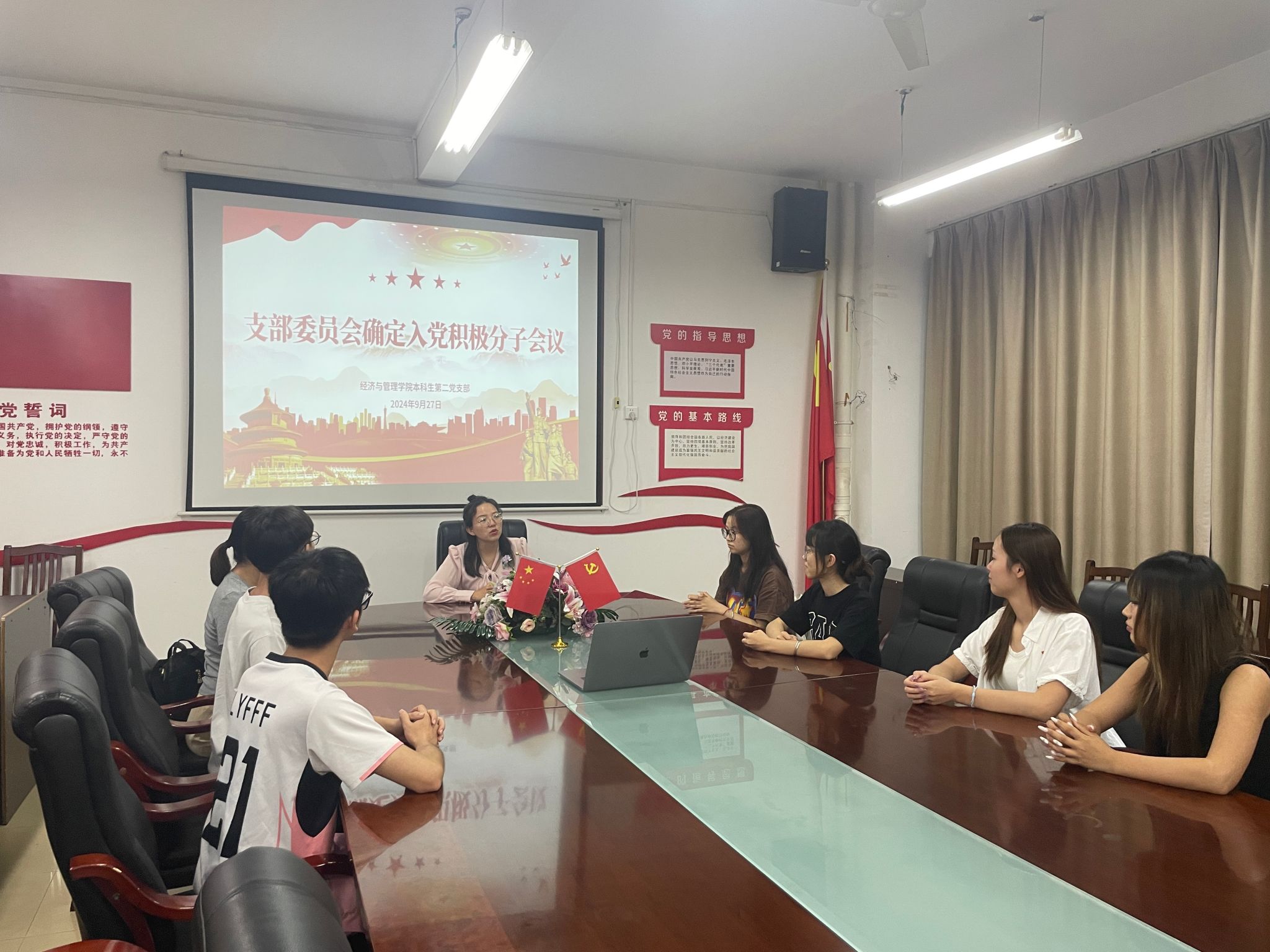 会上,支部副书记陆柳政依次对黄集悦等10名入党申请人的基本情况进行了简要介绍。各班代表及支部党员依次从各入党申请人的入党动机、思想情况以及学习、工作和生活等方面对10名入党积极分子人选进行了逐一讨论。由支部委员会逐个进行无记名投票表决,经过会议审议投票结果决定,黄集悦等10名同学确定为入党积极分子人选。最后,刘老师作总结讲话,她鼓励大家学习身边优秀党员榜样,积极投身于共产主义事业,为中华民族伟大复兴奉献青春热血。