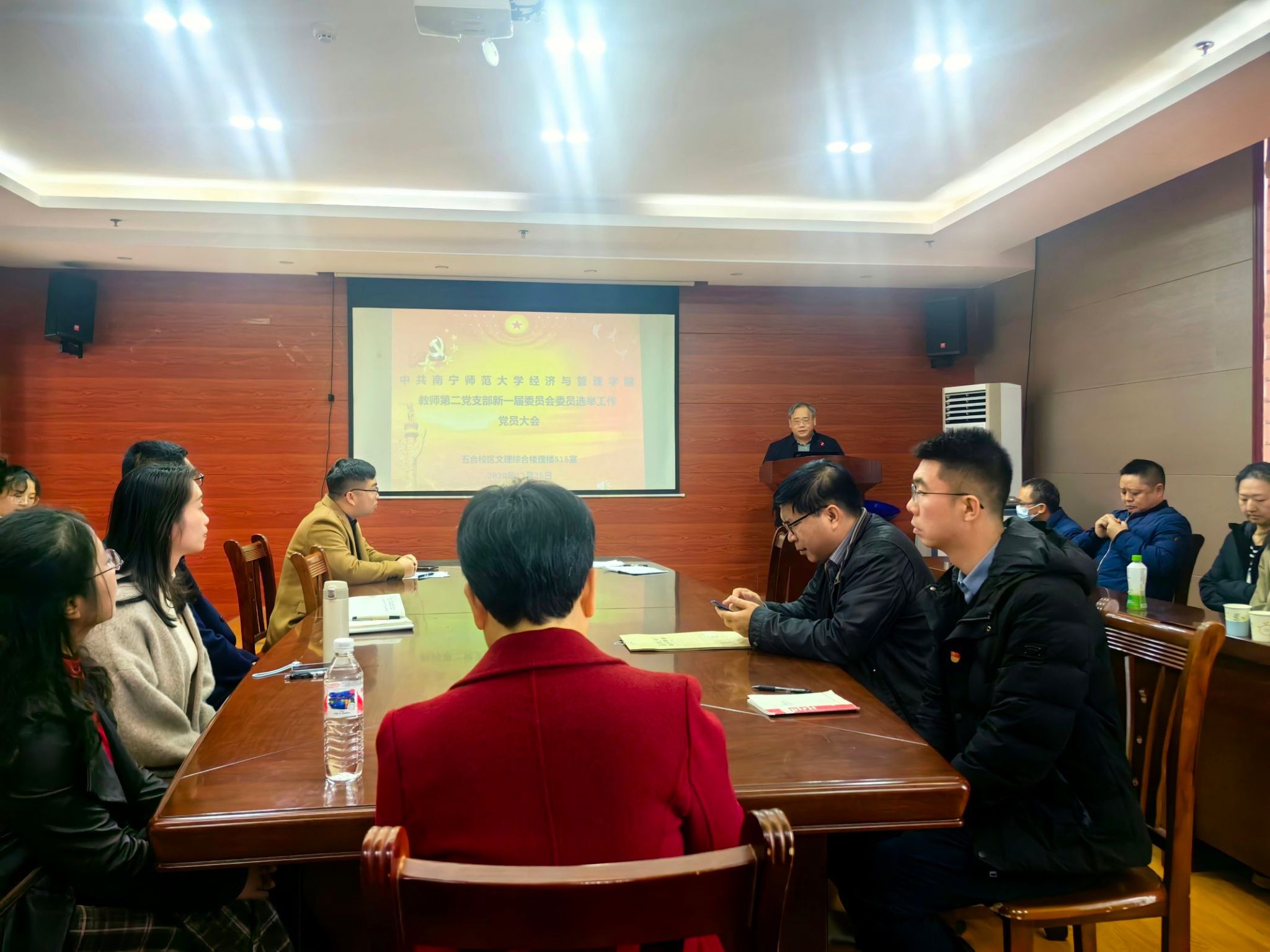 教工第二党支部于12月25日在五合校区文理综合楼召开了换届选举大会,会议由支部书记韦海鸣主持,支部全体成员参会。