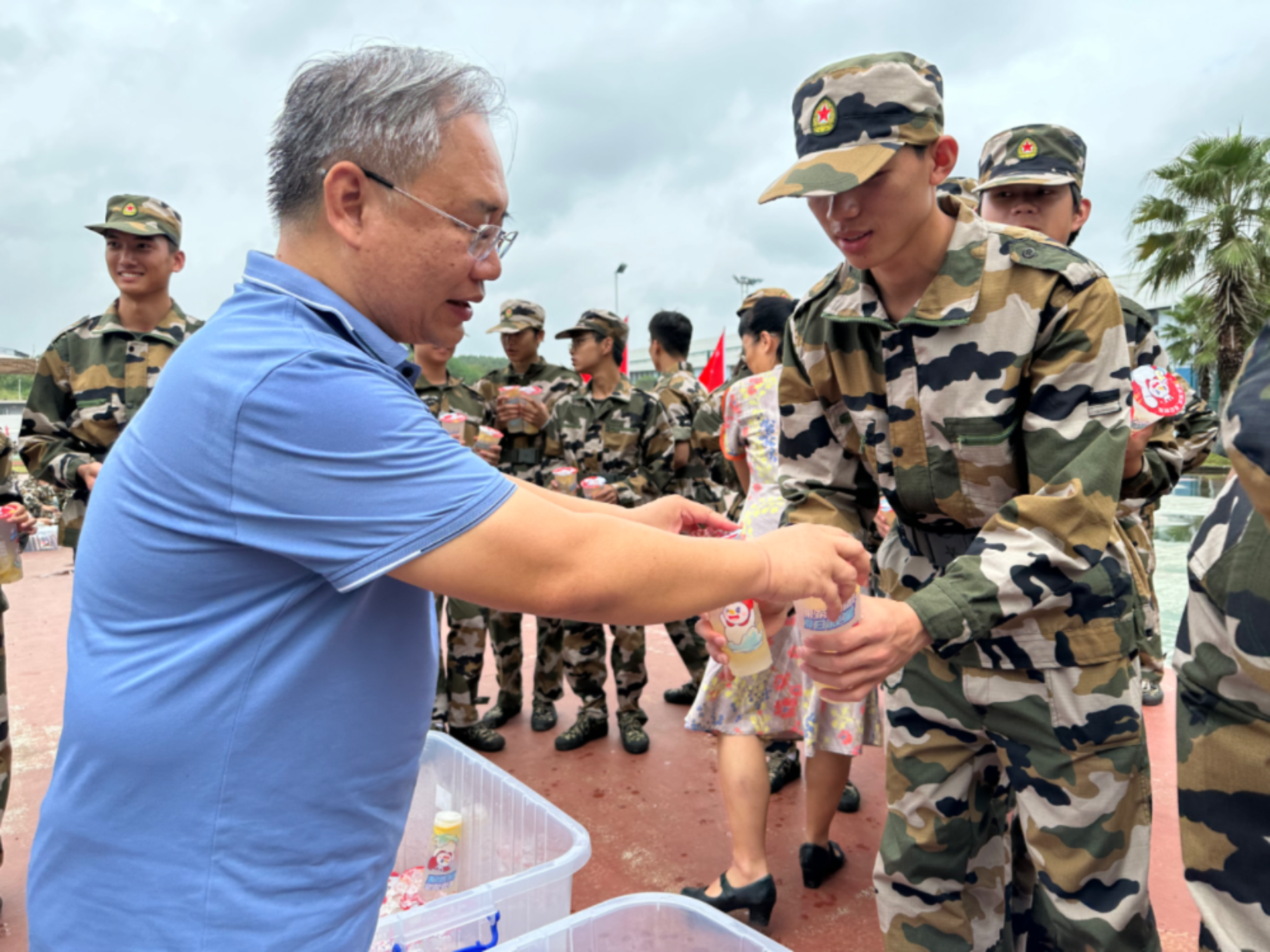 党委书记韦海鸣教授、副院长何玲玲教授、辅导员及2024级各班班主任等来到五合校区篮球场,看望并慰问军训教官和经管院2024级全体参训学生。