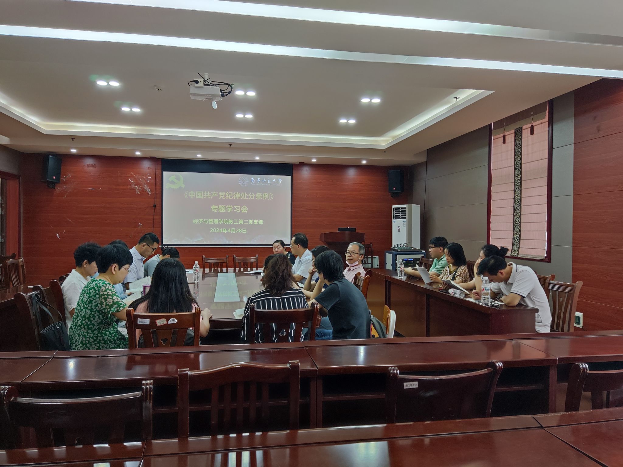 为深入开展党纪学习教育,进一步增强党员党性修养,根据学院党委的部署安排,428日,av影片 教工第一党支部、教工第二党支部分别开展了党纪学习教育专题学习会。会议由各教工党支部书记主持。