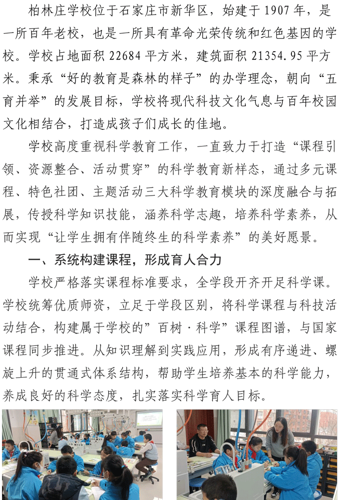 厚培科学教育沃土 多元赋能筑梦未来——柏林庄学校科学教育课程建设纪实