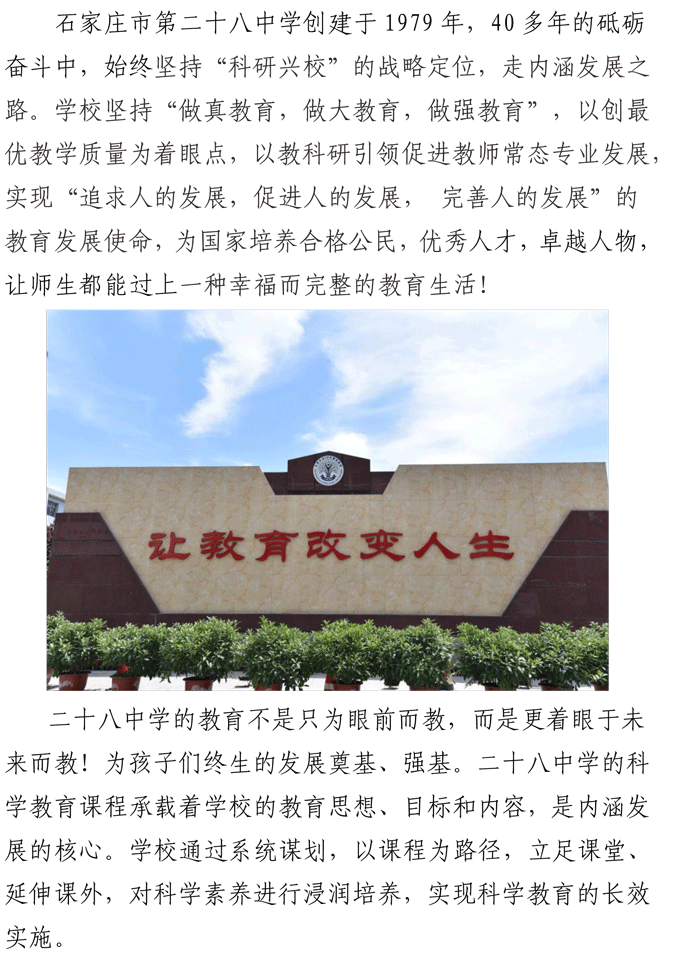 建科学教育主阵地 为科学教育“做加法” ——石家庄市第二十八中学探索科学教育纪实