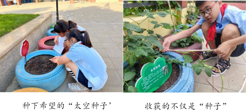 由科学教师和综合实践劳动课教师牵头,带领学生进行从种子到种子的太空种植活动。从太空种植的意义、育种、移栽、管理、收获等环节加强学生对太空育种知识和理论的指导。