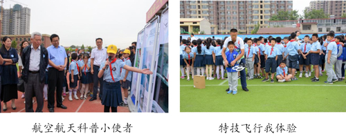 航空科普特色是宏远路小学一张靓丽的名片。学校于2019、2021、2022、2023年承办了四届栾城区全国科普日主场活动暨校园航空航天博览会。博览会包含学生自制航空航天模型展、科幻画、无人机编舞表演、水火箭比赛、航空航天科普展、航空、探海、探地科技成果展、智能机器人表演、纸飞机展演飞行秀、航空科普拓展活动进校园、航空航天专家报告等10项主题活动,以航空航天科普教育为载体,多学科整合的主题实践活动课程为路径,使学生有机会多途径、全方位接触航空航天知识,自主探索、设计、创作航空航天作品,充分感受到其魅力,增强学生的科技文化自信,激发小学生的航空梦和科技梦。