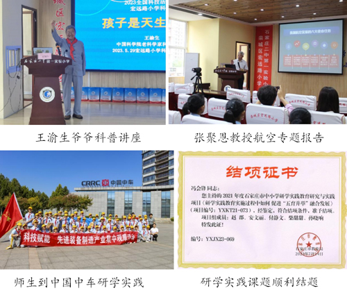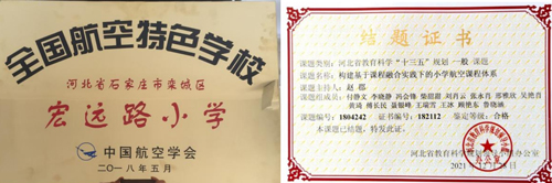 宏远路小学开展的多项航空航天特色活动,经过总结、梳理,形成了一系列可推广、可复制的教育教学成果。其河北省教育科学“十三五”规划课题《构建基于课程融合实践下的小学航空课程体系》顺利结题。