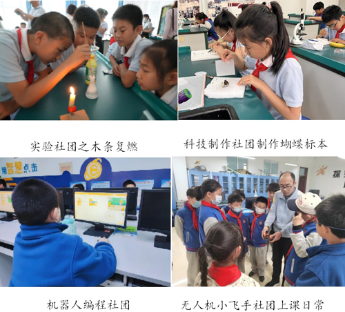 学校设立科学实验、科技制作、无人机小飞手、机器人编程、天文社团,由专任教师和聘任的校外辅导员对学生进行全面指导。