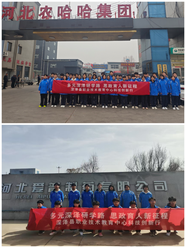 近日,深泽县职业技术教育中心开展“多元深泽研学路、思政育人新征程”主题活动,带领学生踏上前往河北农哈哈机械集团、河北爱普制药有限公司的研学之旅。