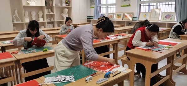 剪纸区域,一位位参赛教师手持小巧剪刀,在红纸上游走翻转,不到十分钟,一幅以“祝福”为主题的精美窗花便跃然眼前,线条流畅,构图精巧。旁边的画扇区同样引人注目,教师们或工笔细描,或写意挥洒,将花鸟虫鱼、山水风光绘于扇面之上,方寸之间尽显艺术功底。陶艺制作区,教师们专注地揉捏着手中的陶土,随着转盘的旋转,一件件朴拙精巧的陶器逐渐成形,有的教师还在作品上雕刻了富有教育意义的图案纹饰。