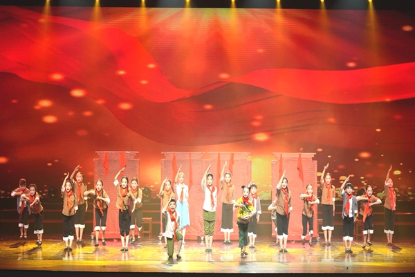 展演现场,艺术之花竞相绽放。石家庄市东马路小学“梦·绽放”管乐团演奏的《新少年畅想曲》,奏响本场展演的开场乐章。石家庄市盛和小学带来的戏剧《百年脊梁》,以光影演绎回望百年征途,在铿锵台词与真挚演绎中传递信仰力量;神兴小学教育集团串联演绎《红星歌》《时钟》,红色记忆与自然之趣相映成趣,清脆童声唤醒初心、灵动旋律勾勒美好;太行大街小学的舞蹈《红色记忆》,用优美舞姿讲述少先队历史,让红领巾承载的革命精神代代相传。石家庄市特殊教育学校16名听障学生演绎的《吹吧!白洋淀的风》,以无声的舞蹈传递对生命的敬畏与对美好生活的向往,赢得全场持久掌声。石家庄市艺术学校带来的《太行山上的鼓声》,融合河北民间舞蹈与秧歌元素,铿锵鼓点彰显燕赵豪情,为展演画上圆满句号。